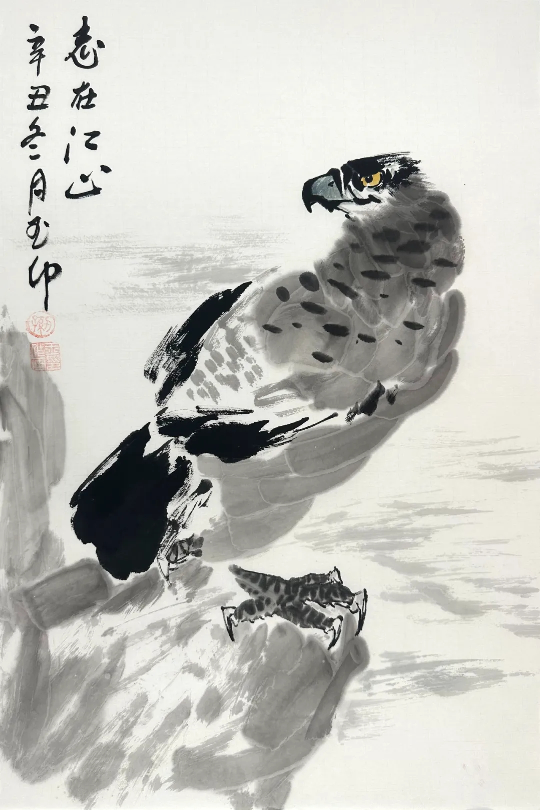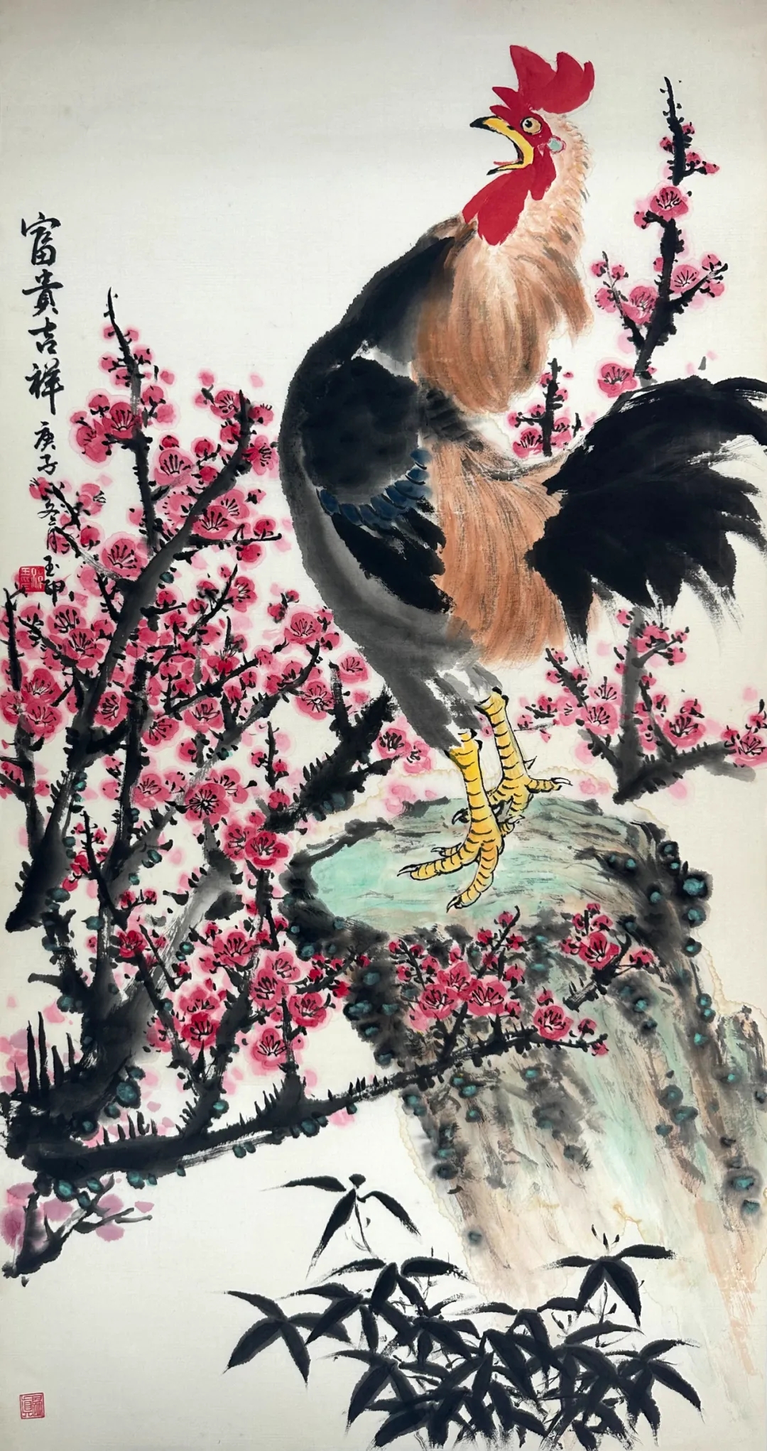 在艺术创作领域,深入学习张大千,傅抱石,李苦禅等名家的绘画技巧,多次拜访傅抱石先生学习山水画创作,拜访于希宁教授,探讨花鸟绘画创作方法,拜于希宁教授为师学习,孙玉印先生于花鸟画方面成就斐然,尤其是画梅,堪称一绝。他笔下的梅花,仿若被赋予鲜活的生命,在宣纸之上肆意绽放,傲然挺立,尽显坚韧风骨。画鹰时,他同样技艺精湛,将雄鹰的神韵与姿态刻画得形神兼备;画鸡,无论是威风凛凛的雄鸡,还是憨态可掬的小鸡,都被他描绘得栩栩如生,跃然纸上。
